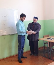 29 сентября главный специалист-эксперт отдела по взаимодействию с религиозными организациями Миннаца РД Руслан Нукеров встретился с директором Медресе имени Имама Шамиля при Центральной Джума-мечети г. Махачкала М. Исрапиловым. В ходе рабочей встречи сотрудник Миннаца РД обсудил с директором медресе вопросы взаимодействия и рассказал о проводимом конкурсе на лучшее каллиграфическое произведение, в котором могут принять участие учащиеся духовных образовательных организаций Республики Дагестан. Он отметил, что конкурс проводится с 26 сентября по 7 октября 2022 г.