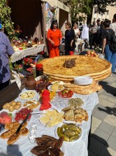 Большое внимание привлекли осетинские пироги, приготовленные Цхинвальским районом. «Наши пироги диаметром 1 метр 62 см, как приготовили – секрет. К подворью готовились всем районом, помогали как отдел культуры, образования, так и главы сельских администраций и др. Как всегда, делали все общими усилиями», - сказал начальник отдела образования администрации Цхинвальского района Олег Козаев. Помимо яств на «Осетинском подворье» была представлена и небольшая концертная программа.