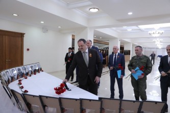 ⠀ Перед началом мероприятия руководитель региона и представители республиканских органов власти возложили цветы к портретам погибших.⠀ Сергей Меликов, выразив искреннее соболезнование и сочувствие родным и близким военнослужащих, отметил: «Сегодня, в канун Дня Победы, мы ещё раз оцениваем то, что происходит, и понимаем, что сегодня наши ребята на Украине, снова защищают нашу Родину, не жалеют жизни ради ее свободы, ради мирного будущего». Память погибших военнослужащих почтили минутой молчания.