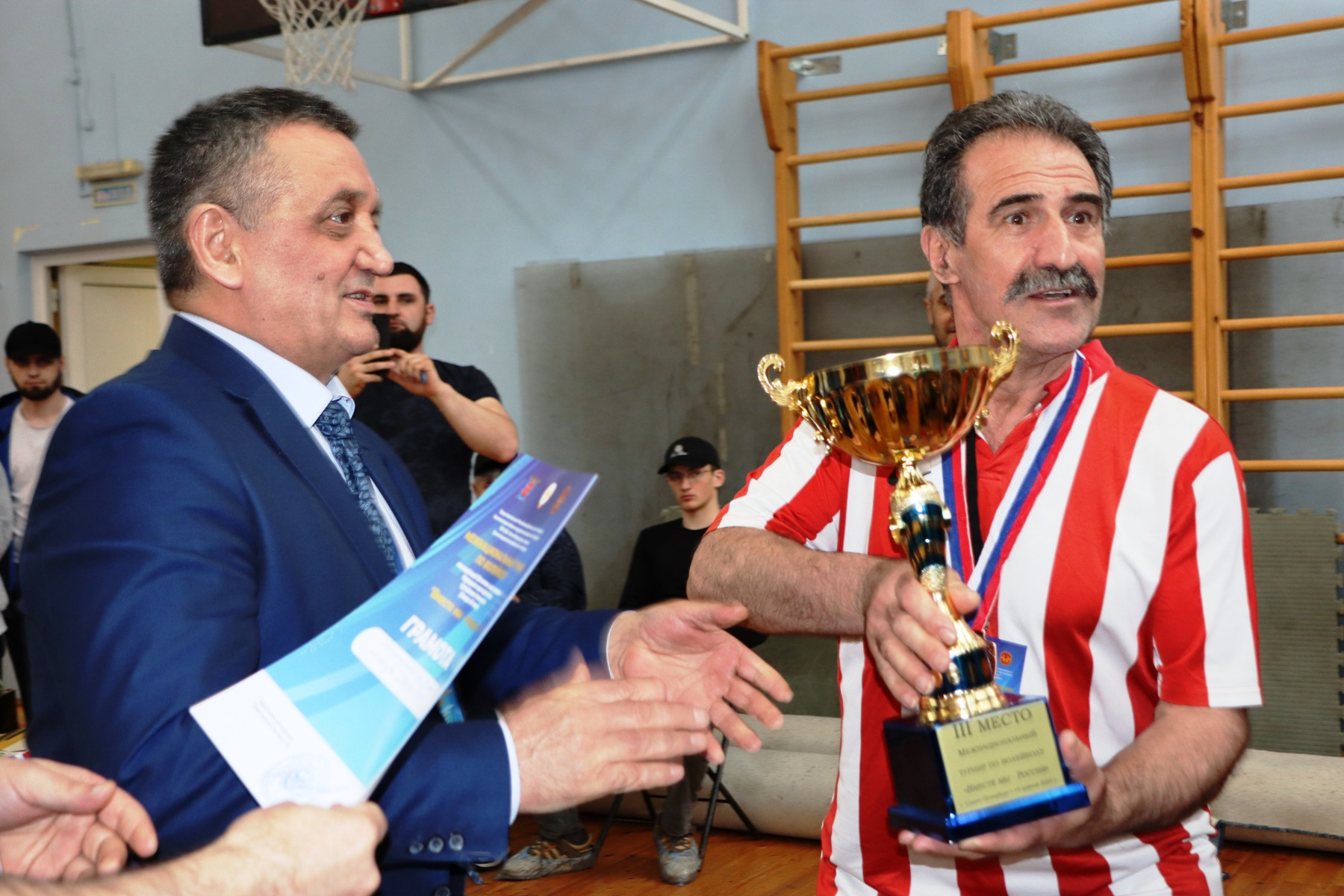 В торжественной обстановке капитанам волейбольных команд, которые заняли призовые — с 1-го по 3-е места, были вручены кубки, а каждому спортсмену — медали соответствующего достоинства. Кроме того, председателю Координационного совета таджикской диаспоры Санкт-Петербурга и Ленинградской области ОО «Сомониён» Ахтамбеку Мамадову за занятое первое место вручили специальный приз — дагестанскую папаху, значок с портретом народного поэта РД Сулеймана Стальского.