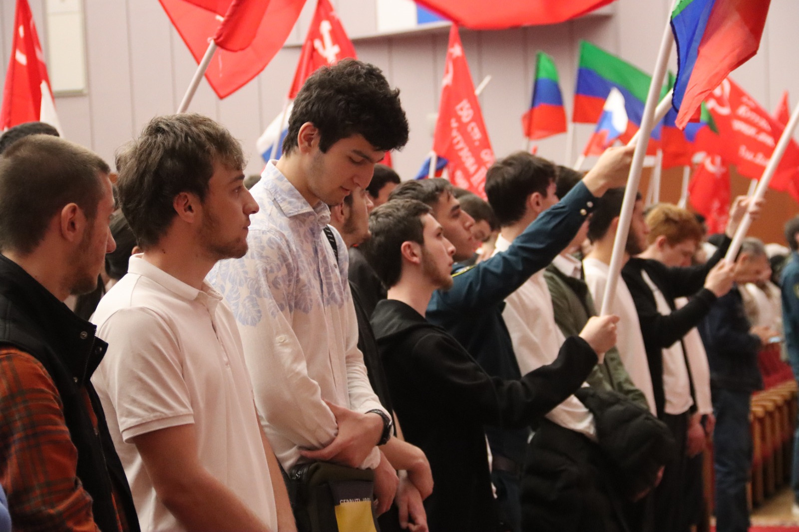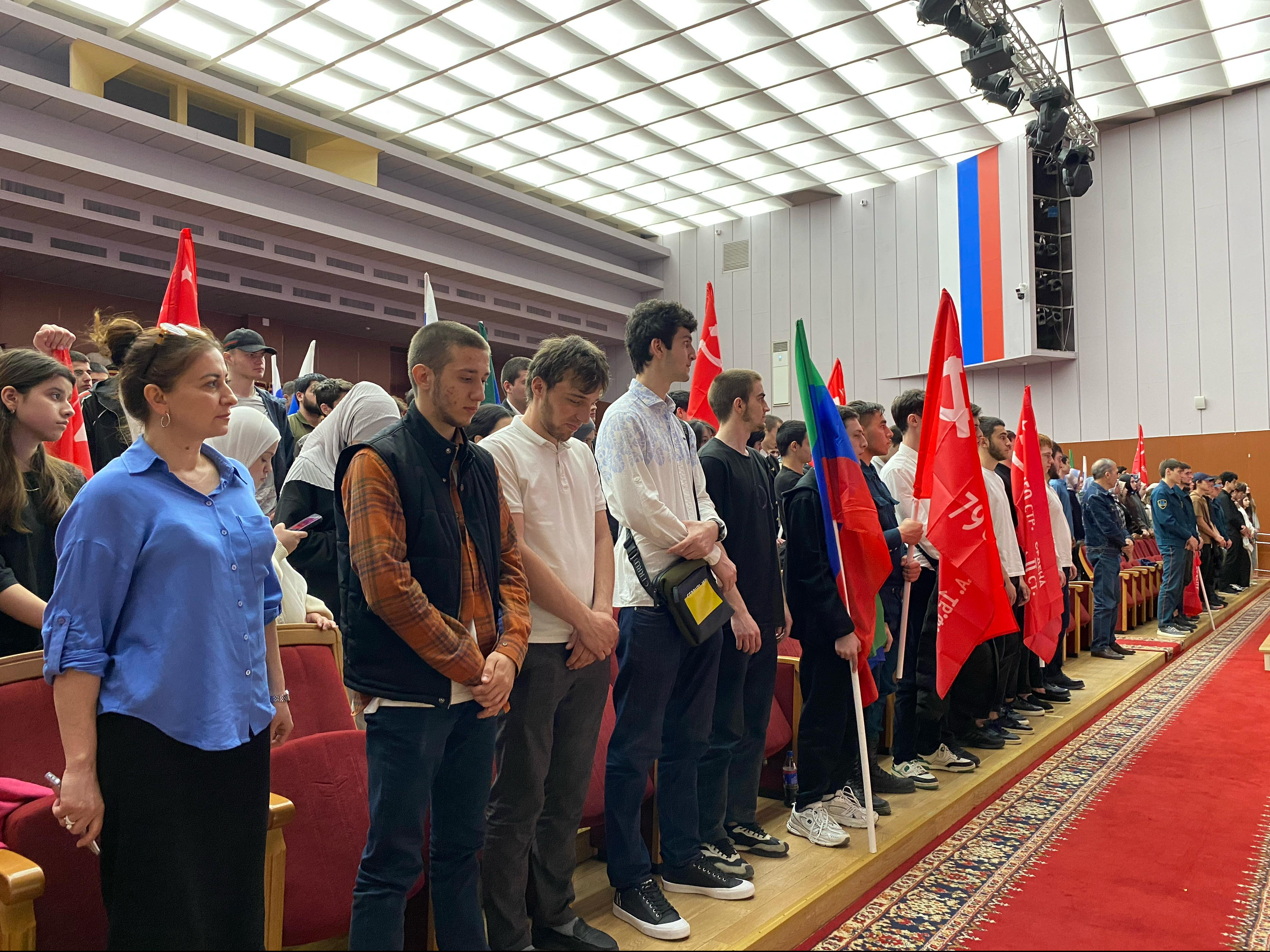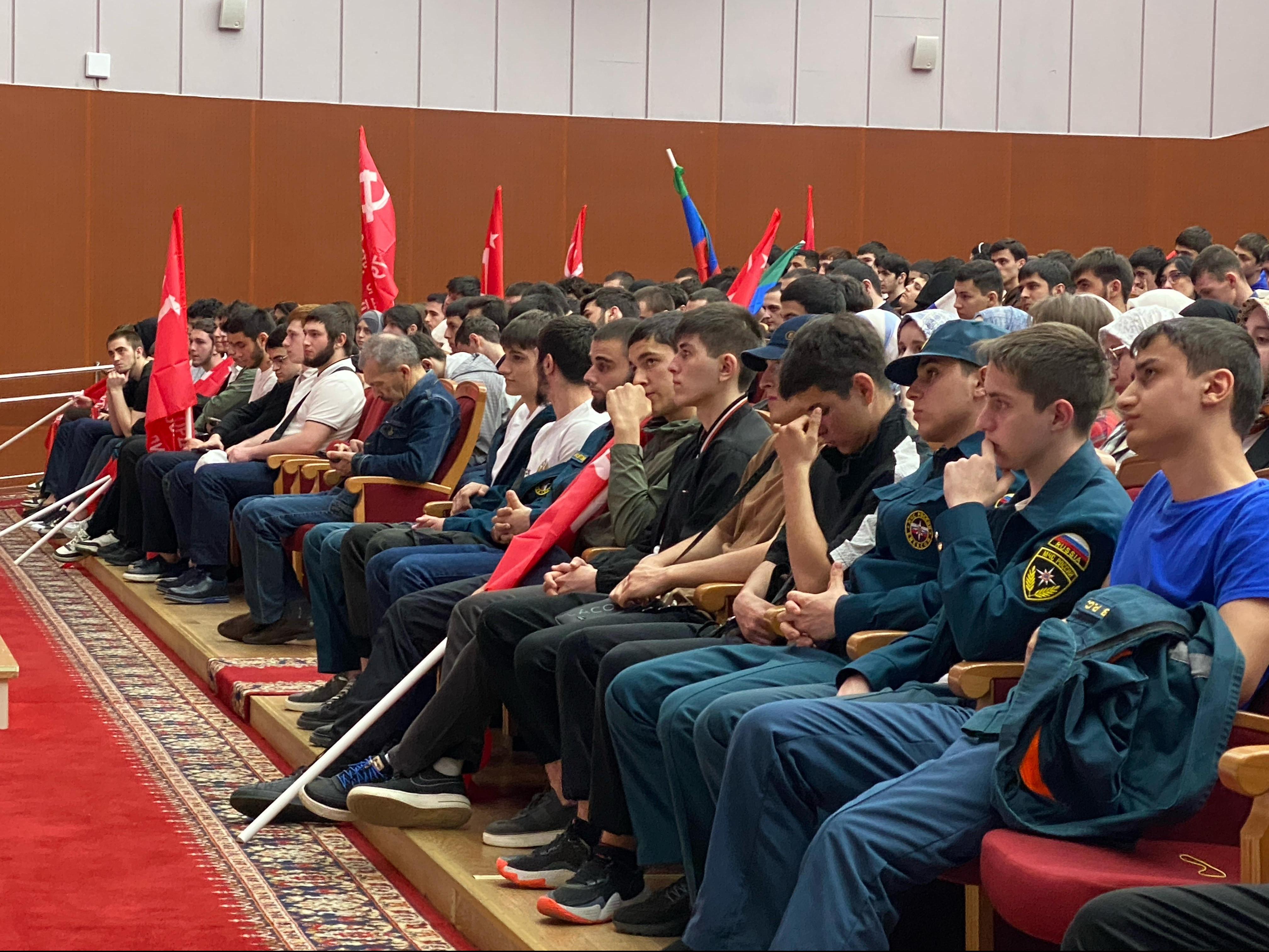 В рамках шестой республиканской «Вахты Героев» и 137-й Всероссийской патриотической акции «Вахты Героев Отечества» на трибуне концертного зала Дома дружбы в Махачкале почести собравшейся молодежи принимали Герои России, Магомед Баачилов, Магомед Гимбатов, Загид Загидов, Абубакар Костоев, участник СВО старший лейтенант Темирлан Абуталимов.
