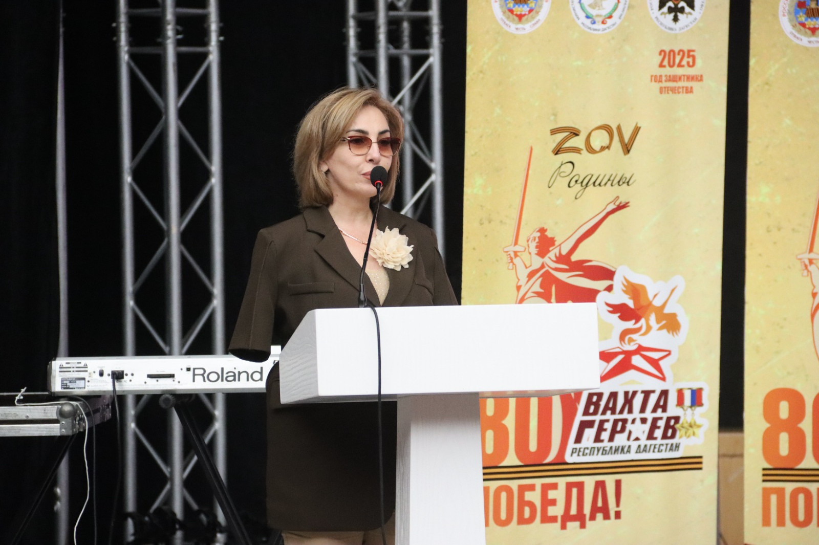 «В первую очередь поздравляю вас всех с наступающим праздником, юбилейной датой 80-летия Победы. В 1945 году наш земляк Абдулхаким Исмаилов водрузил знамя победы над Рейхстагом. И это стало символом героизма и мужества русского солдата. И 180 тысяч наших земляков-дагестанцев сражались на полях Великой Отечественной войны. И, к сожалению, половина из них не вернулась. И по сей день в зоне проведения специальной военной операции с боевыми товарищами мы являемся наследниками тех героев и продолжаем их путь.